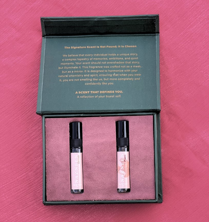 Currently, our women’s tester box contains two premium-quality perfumes: